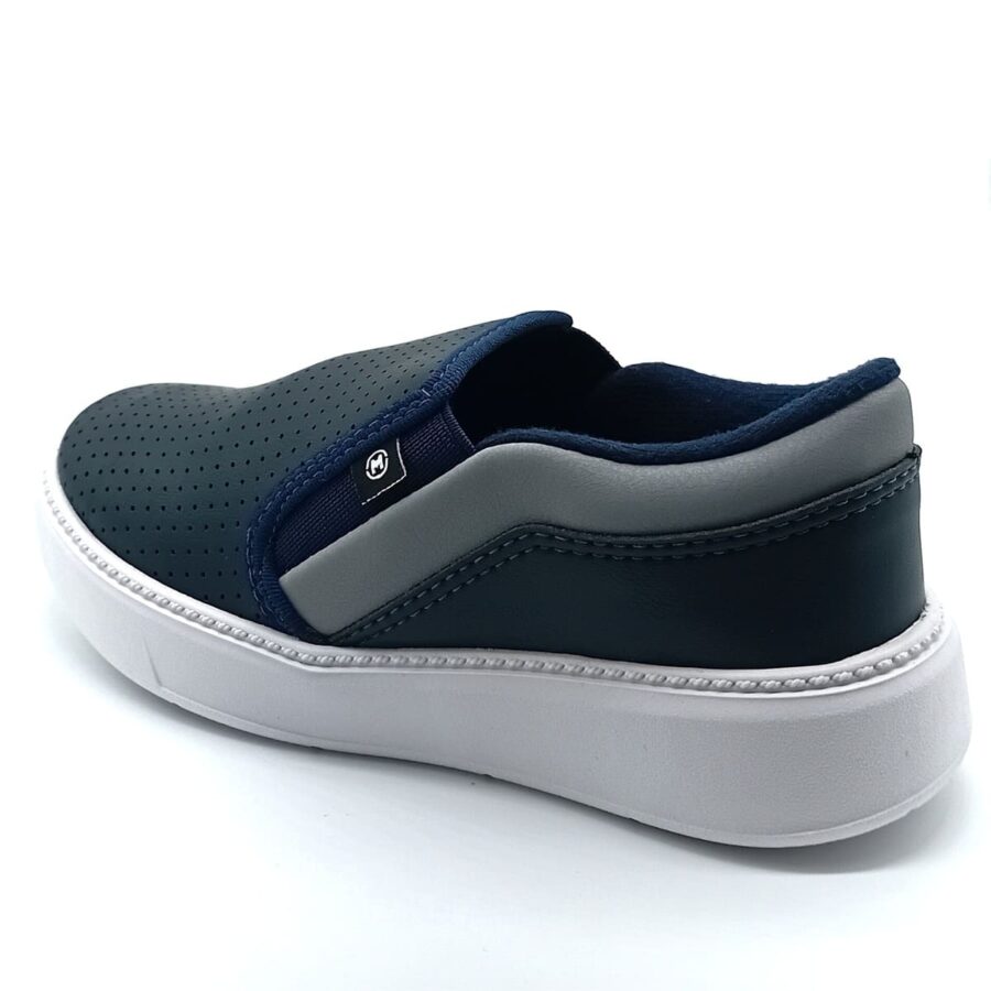 O sistema calce-fácil é um dos grandes destaques do Iate Slip On, permitindo que o menino coloque e retire o calçado com autonomia e rapidez. Sem cadarços, o ajuste é firme e confortável, proporcionando segurança ao caminhar e liberdade para brincar.