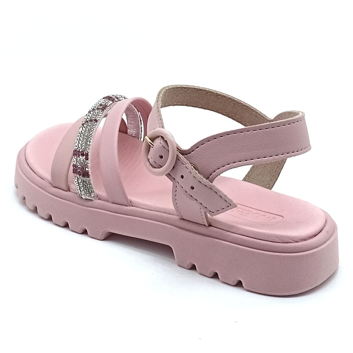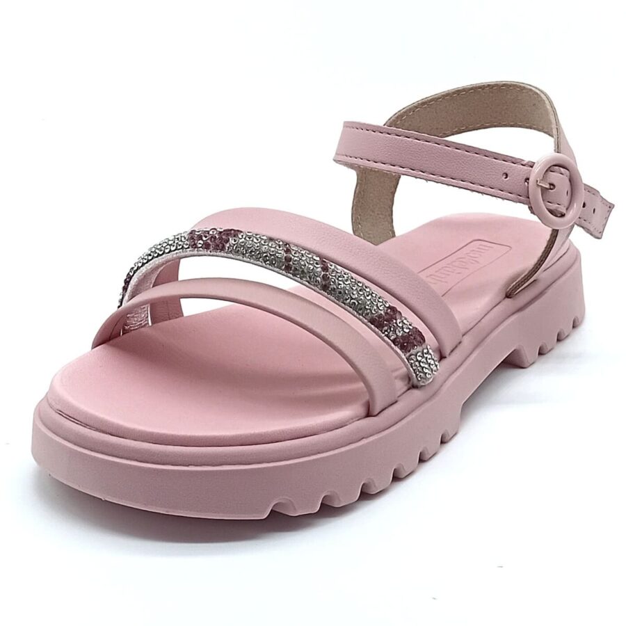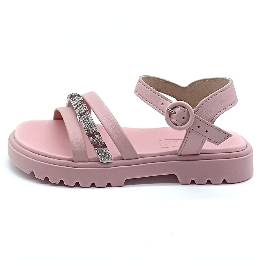 O destaque fica por conta da fivela ajustável, que além de trazer um charme especial ao modelo, proporciona melhor ajuste aos pés das meninas, garantindo segurança e estabilidade durante o uso. O acabamento com brilho adiciona um toque delicado e fashion ao calçado, deixando o look ainda mais bonito e alinhado com as tendências da moda infantil.