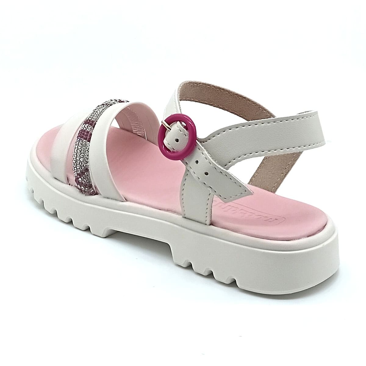 O destaque fica por conta da fivela ajustável, que além de trazer um charme especial ao modelo, proporciona melhor ajuste aos pés das meninas, garantindo segurança e estabilidade durante o uso. O acabamento com brilho adiciona um toque delicado e fashion ao calçado, deixando o look ainda mais bonito e alinhado com as tendências da moda infantil.